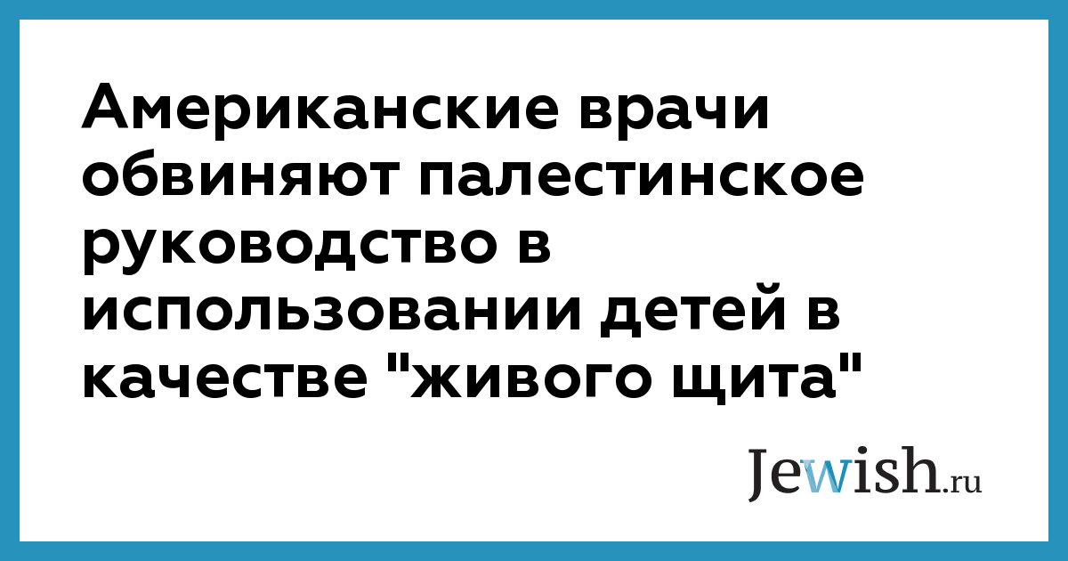 Американские врачи обвиняют палестинское руководство в использовании детей в качестве "живого щита"