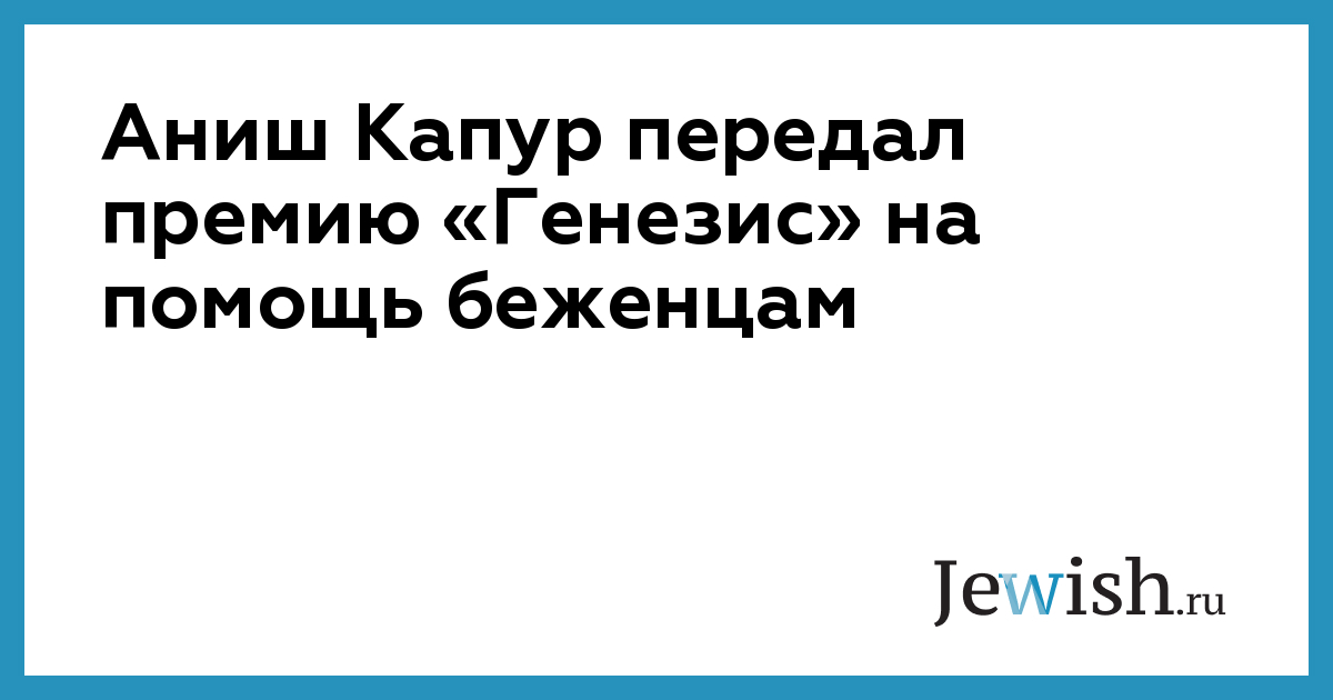 Британский скульптор индийско-еврейского происхождения Аниш Капур передал 1 млн долларов пяти благотворительным организациям, работающим с беженцами. В их числе — «Гилель», организация помощи сирийским беженцам и Еврейское общество помощи иммигрантам. Капур перевел благотворительным фондам полученную им в прошлом году премию «Генезис», также известную как «еврейская Нобелевка». Художник подчеркнул, что, как и у большинства еврейских семей, его предки тоже были беженцами.