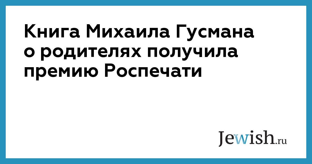 Книга Михаила Гусмана о родителях получила премию Роспечати