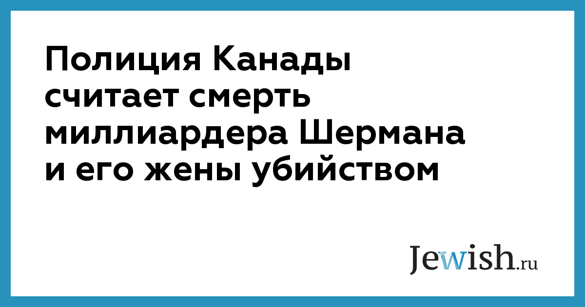 Полиция Канады считает смерть миллиардера Шермана и его жены убийством