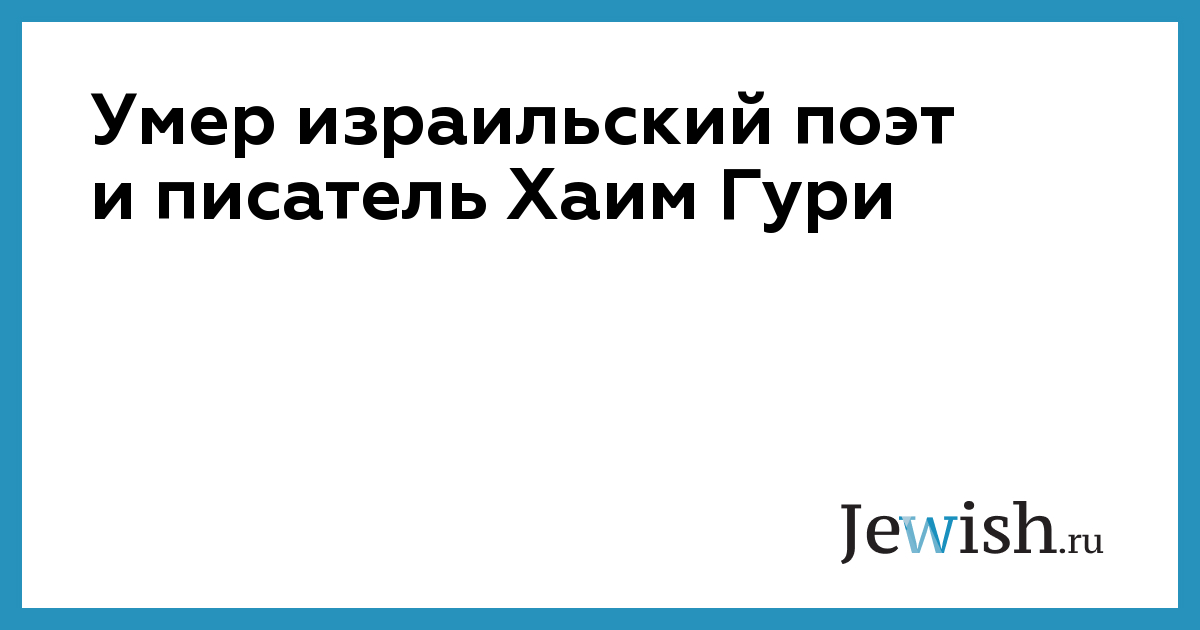 В Израиле в возрасте 94 лет умер поэт, писатель и журналист Хаим Гури, пишет Haaretz. Гури родился в семье репатриантов из Одессы, был членом «Пальмах», был командиром курса десантников, участвовал в Войне за независимость, в Шестидневной войне и войне Судного дня.