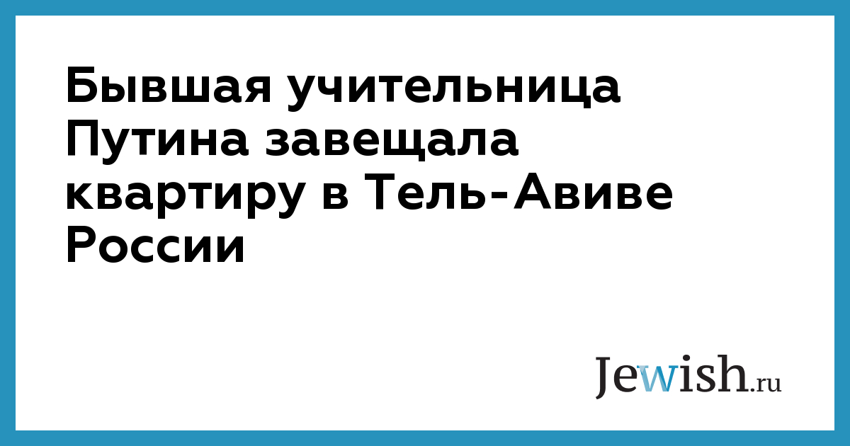 Бывшая учительница президента России Владимира Путина Мина Юдицкая завещала свою квартиру в Тель-Авиве России, сообщает РБК со ссылкой на посольство России в Израиле. По словам представителя дипмиссии в завещании Юдицкой, которая скончалась в конце 2017 года в Израиле, указано, что жилище завещано Российской Федерации. «Сейчас идет работа над соответствующими документами», — добавил он. Полуторакомнатная квартира в центре Тель-Авива была куплена бывшей учительнице по распоряжению Путина в 2005 году.