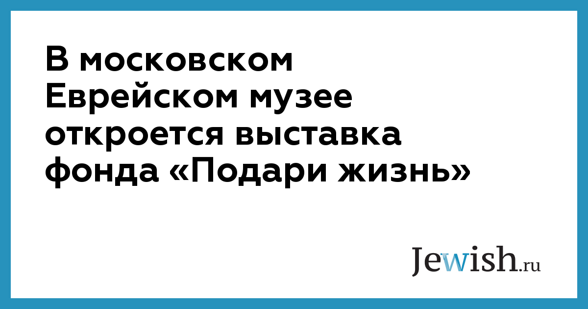 В московском Еврейском музее откроется выставка фонда «Подари жизнь»