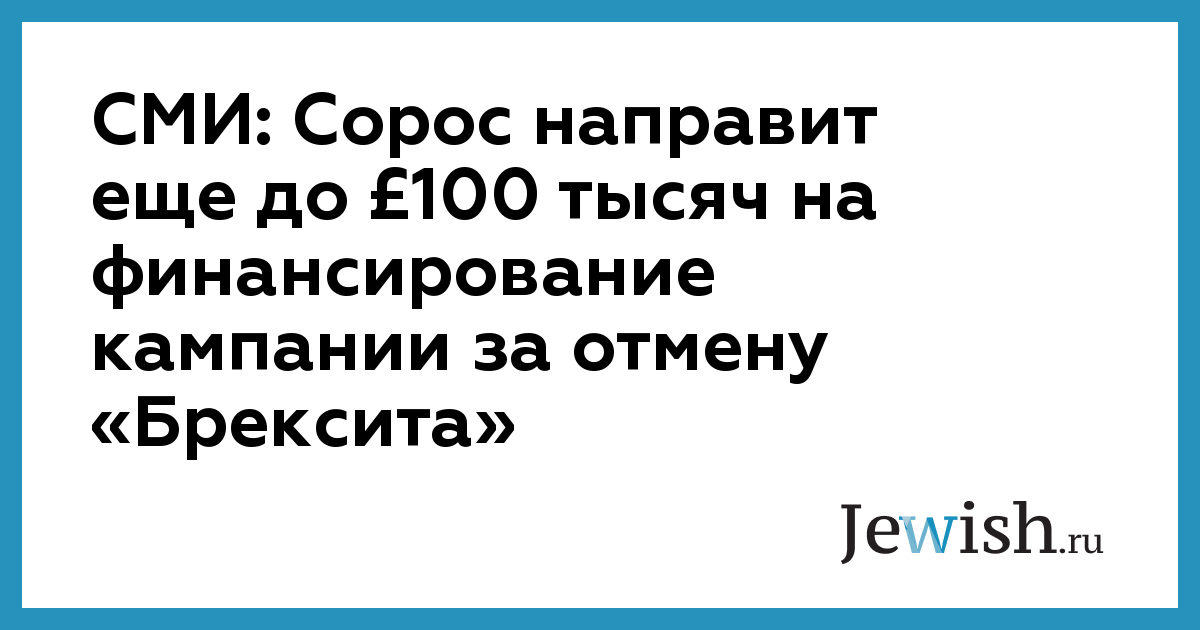 Американский финансист Джордж Сорос через свой фонд Open Society Foundations направил еще до £100 тыс. на финансирование кампании за сохранение Британии в ЕС. По информации The DailyTelegraph, о направлении пожертвования господин Сорос и его фонд OSF объявят сегодня. Об этом пишет Коммерсант.