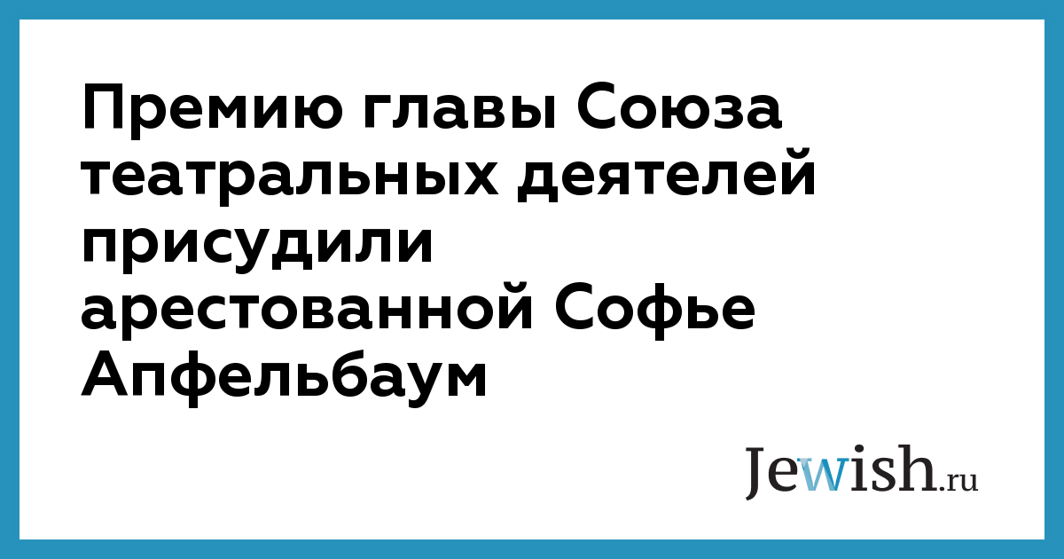 Премию главы Союза театральных деятелей присудили арестованной Софье Апфельбаум