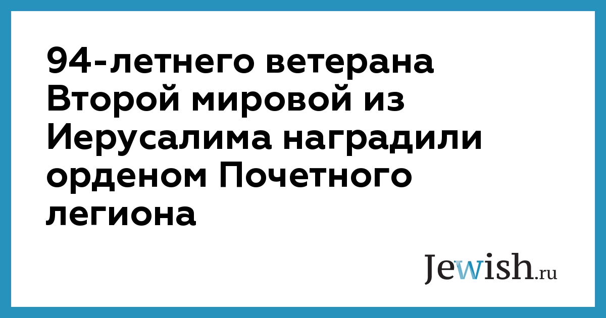 94-летнего ветерана Второй мировой из Иерусалима наградили орденом Почетного легиона