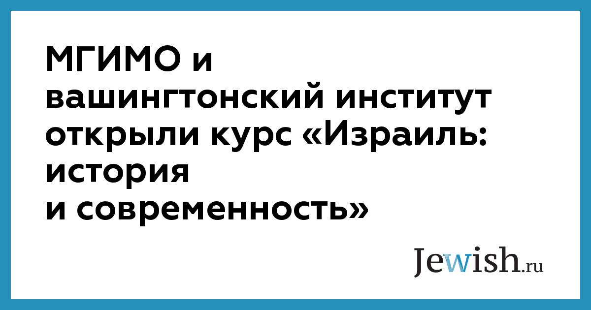 МГИМО и Институт Израиля в Вашингтоне открыли пилотный образовательный курс «Израиль: история и современность». Программа стартовала 19 февраля. В рамках курса в МГИМО раз в неделю будут проходить занятия на ключевые темы в истории современного Израиля: становление государства, актуальная экономическая, политическая и социальная проблематика, инновационное развитие и стратегическое видение будущего страны. Лекции будут проходить на английском и русском языках по понедельникам, начало в 16:00.