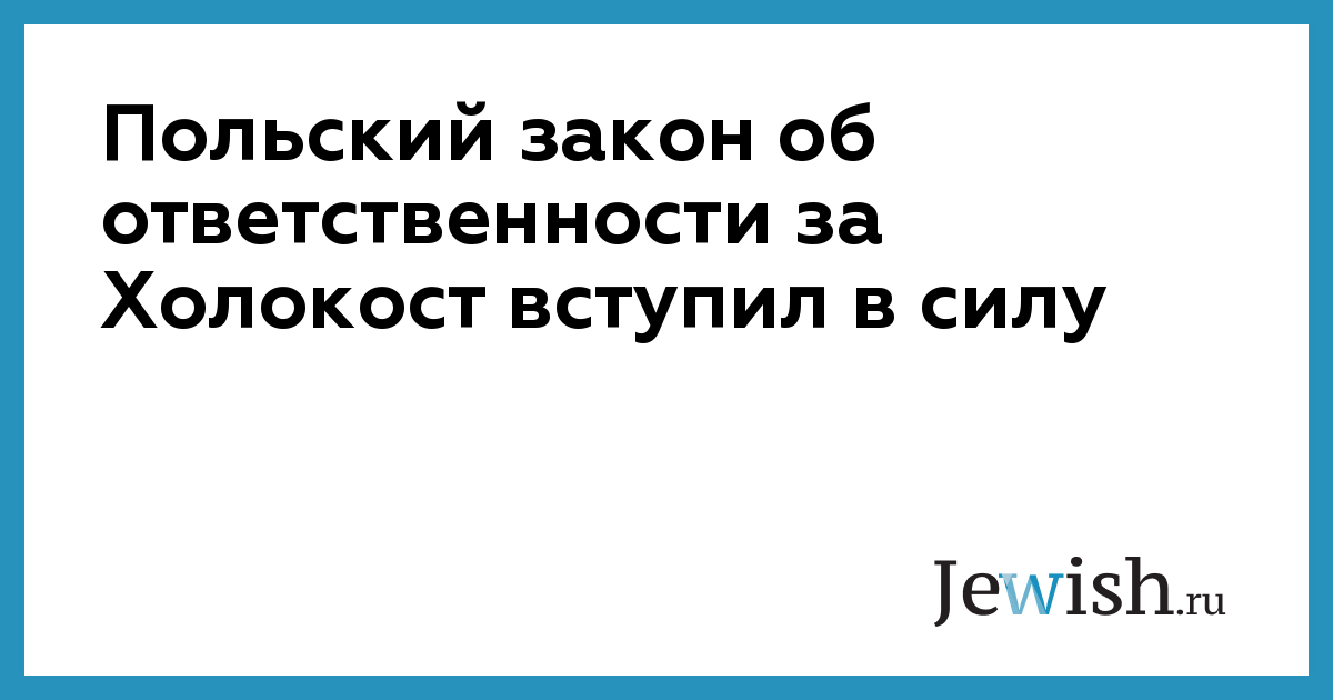 Польский закон об ответственности за Холокост вступил в силу