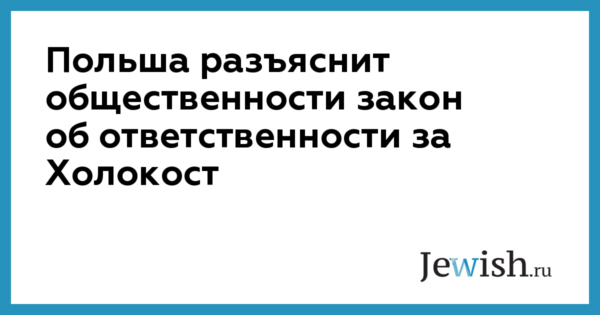 Принятый недавно в Польше закон об ответственности за Холокост разъяснят в ходе специальных встреч. Об этом рассказал заместитель главы польского МИДа Бартош Чихоцкий по итогам официальных консультаций в Иерусалиме. «Юристы все понимают, но у общественного мнения есть вопросы, и крайне важно публично разъяснить смысл этого закона»,— приводит слова Чихоцкого агентство PAP. По словам дипломата, следующая встреча может пройти в Варшаве уже в марте. Дипломат выразил надежду, что сторонам удастся создать канал коммуникации, который позволит эффективно обсуждать и другие вопросы.