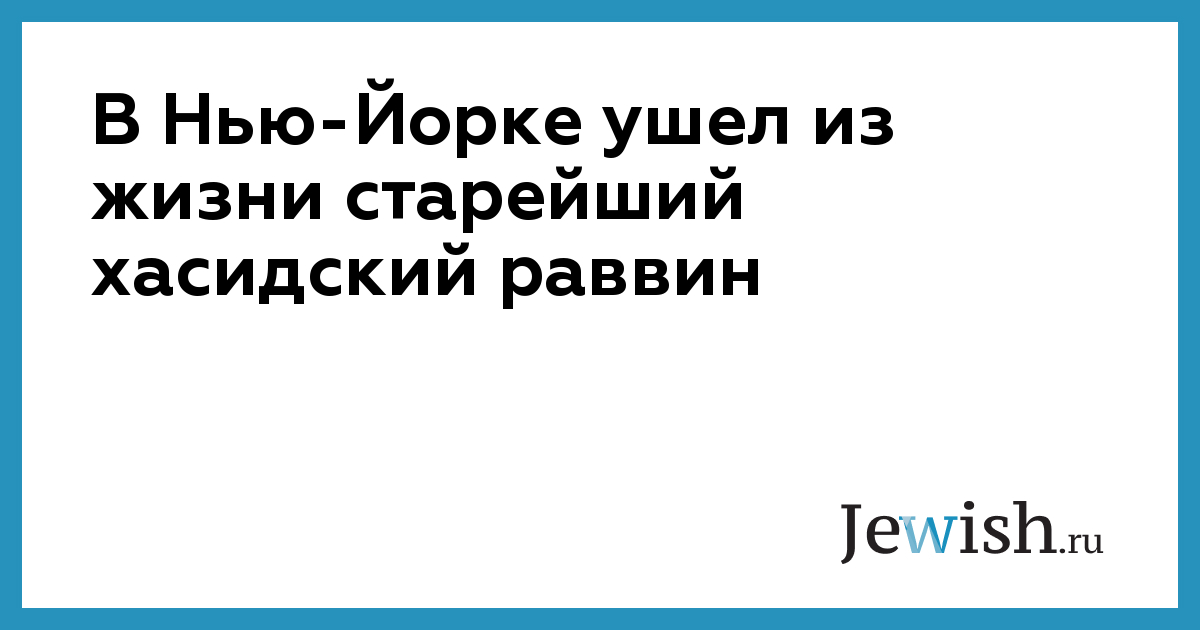 В Нью-Йорке ушел из жизни старейший хасидский раввин