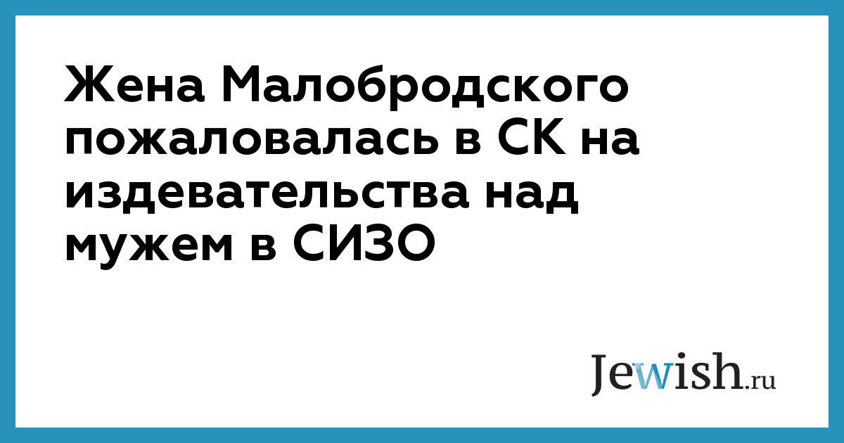 Жена Малобродского пожаловалась в СК на издевательства над мужем в СИЗО