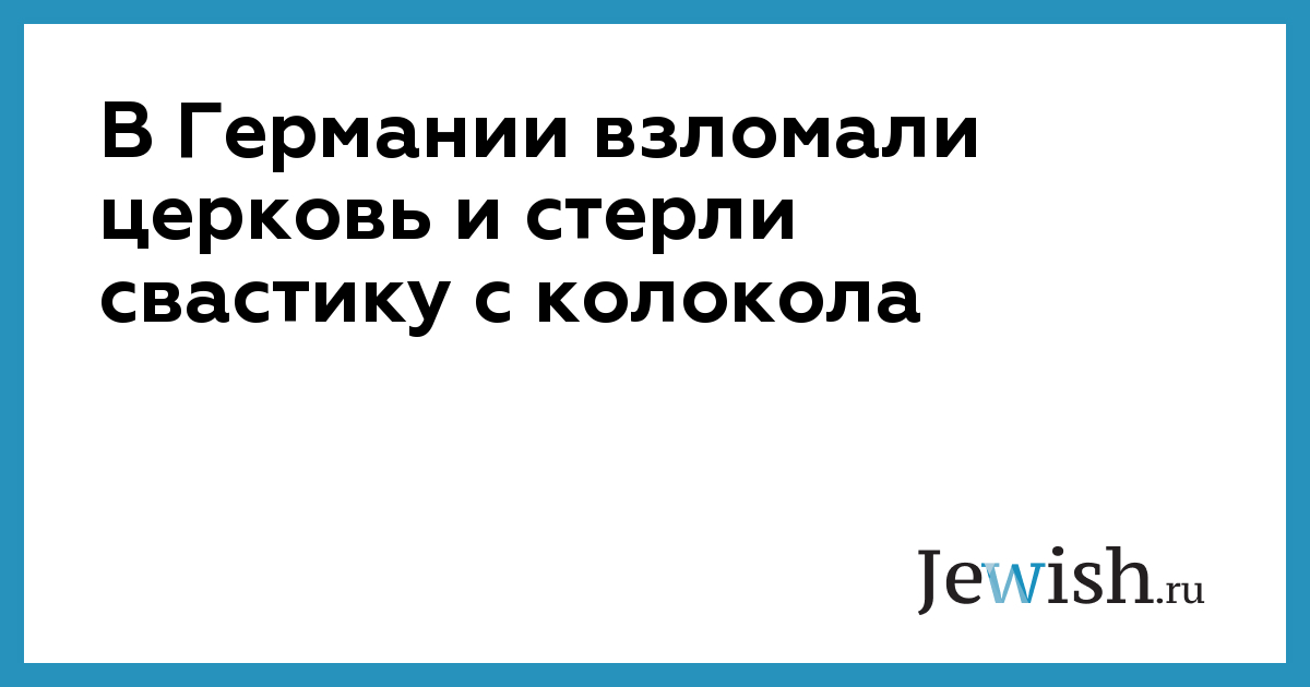 В поселке Шверинген на северо-западе Германии неизвестный тайно проник в церковь и стер оставшуюся со времен Третьего Рейха свастику с колокола. По словам священника, неизвестный проник в церковь с помощью ключа — никаких следов взлома обнаружить не удалось, сообщает Deutsche Welle.
