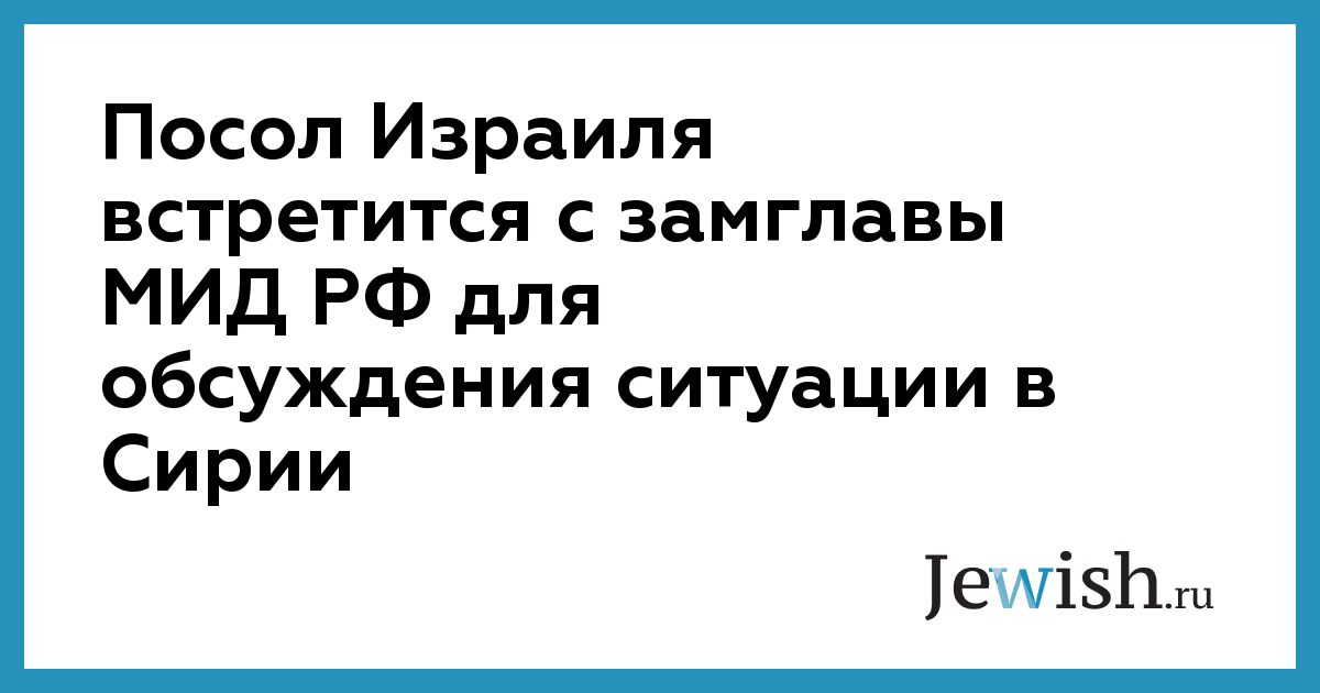 Посол Израиля встретится с замглавы МИД РФ для обсуждения ситуации в Сирии