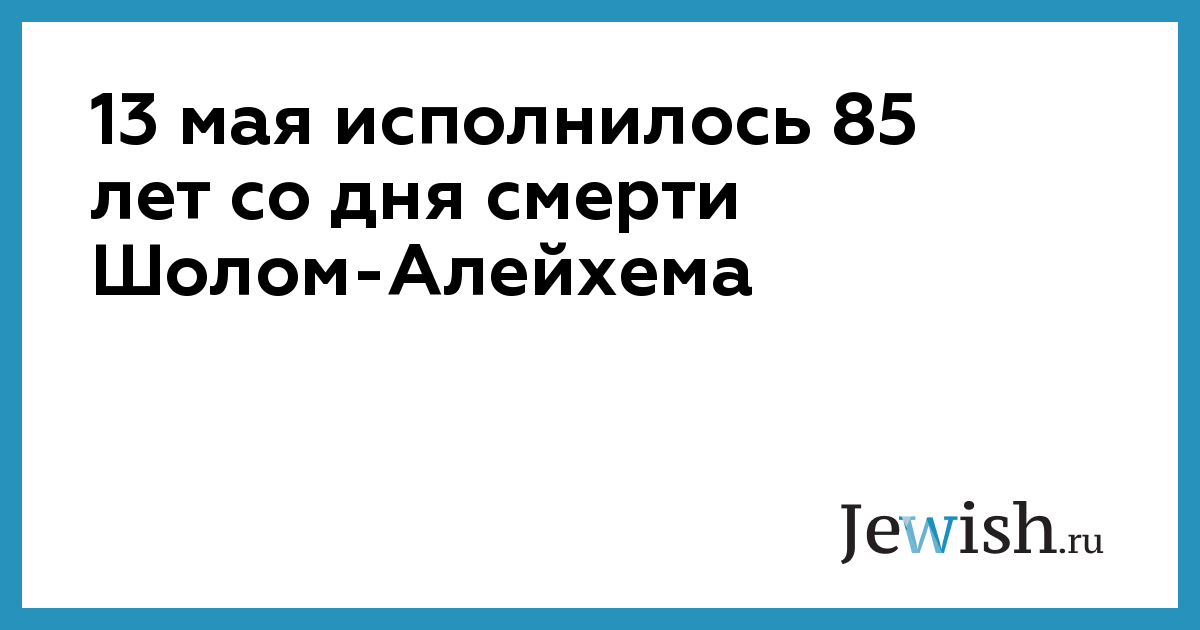 13 мая исполнилось 85 лет со дня смерти Шолом-Алейхема