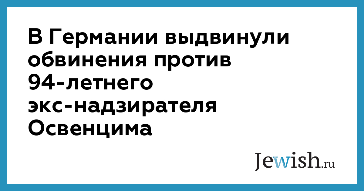Прокуратура Штуттгарта выдвинула обвинение в причастности к убийству 13 тысяч 335 человек в отношении 94-летнего бывшего члена СС, экс-надзирателя Освенцима. По сообщению немецких СМИ, тот служил в концлагере с декабря 1942 года по январь 1943 года. Прокуратура указала, что обвиняемый «участвовал в обеспечении работы лагеря и таким образом поддерживал акции уничтожения».