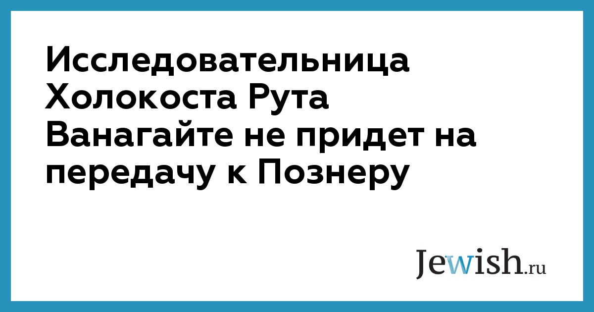 Исследовательница Холокоста Рута Ванагайте не придет на передачу к Познеру