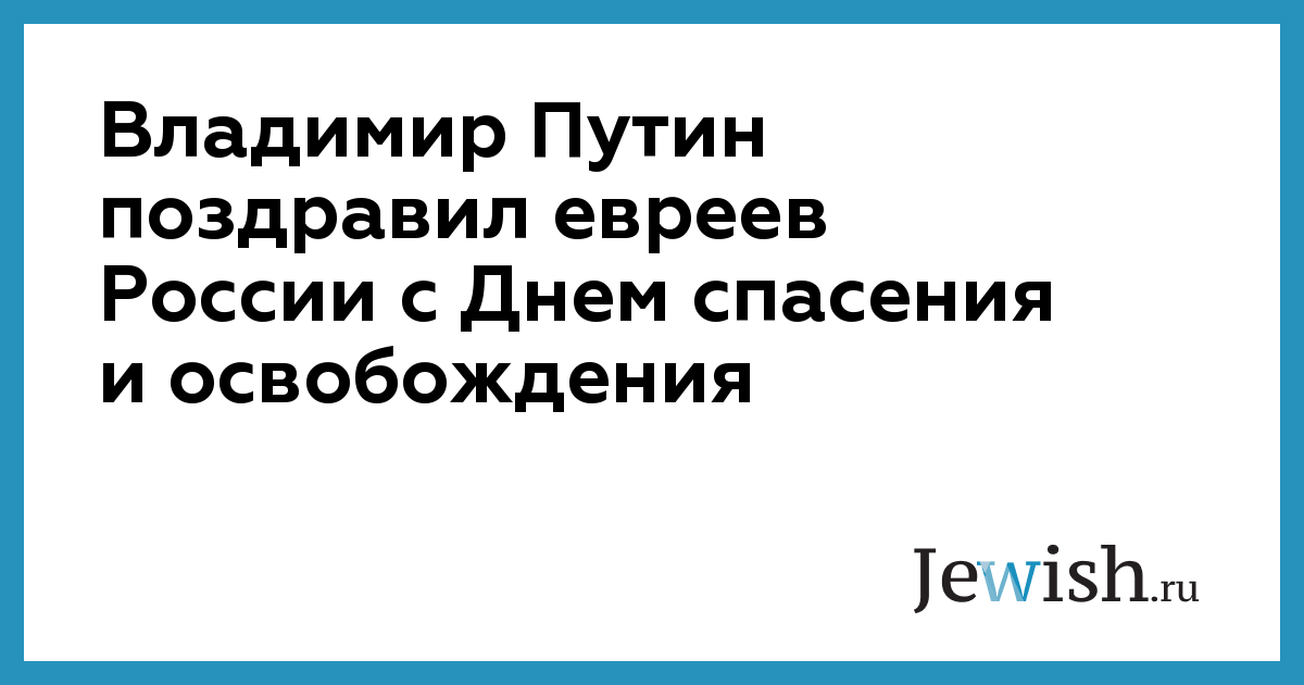 Владимир Путин поздравил евреев России с Днем спасения и освобождения