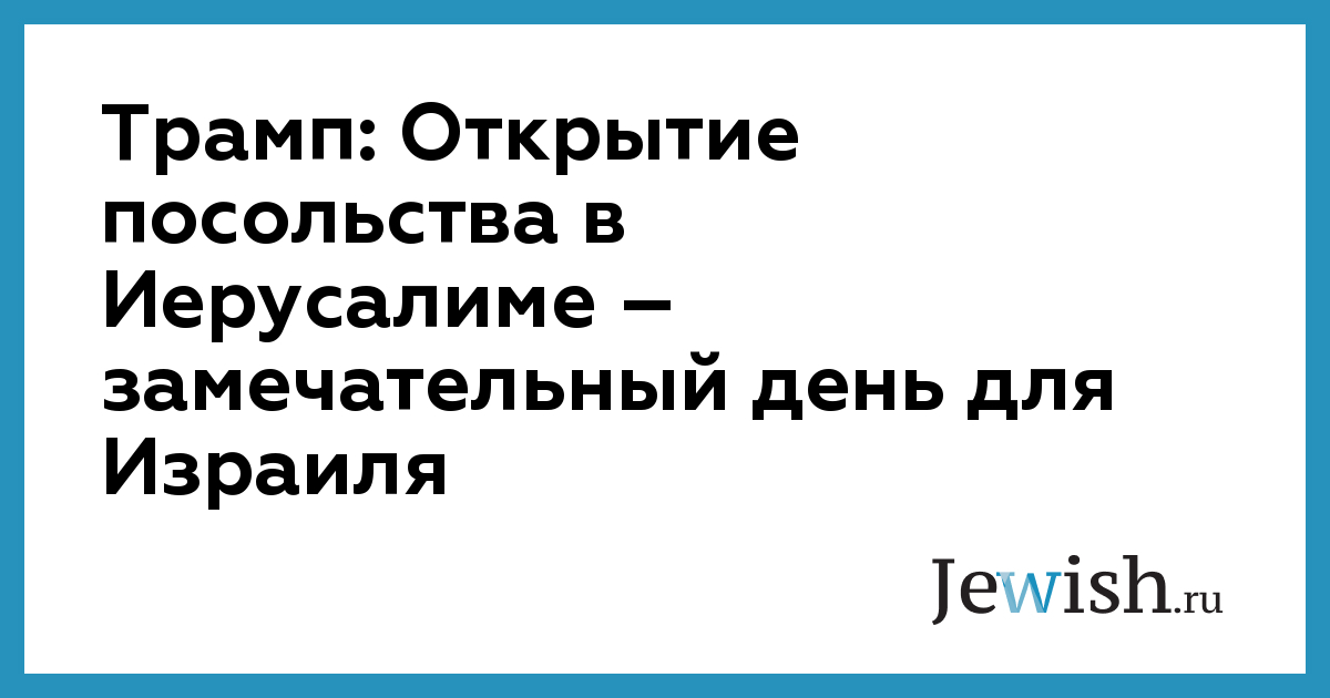 Трамп: Открытие посольства в Иерусалиме – замечательный день для Израиля