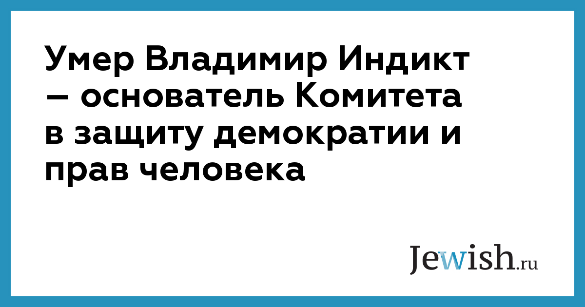 По сообщению пресс-службы Комитета в защиту демократии и прав человека, после тяжёлой и продолжительной болезни скончался основатель Комитета и общественный деятель Владимир Индикт.