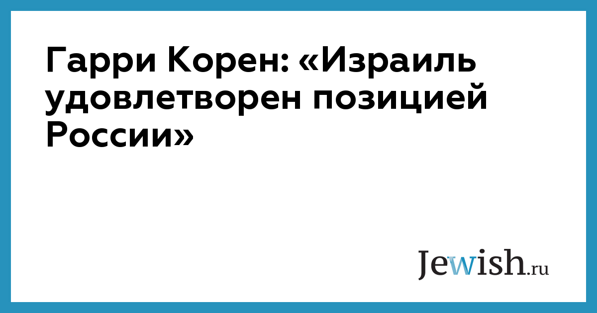 Гарри Корен: «Израиль удовлетворен позицией России»