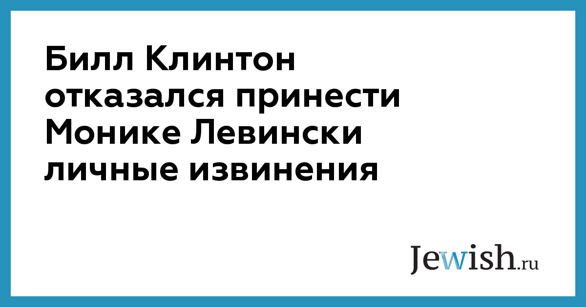 По сообщению JTA, бывший президент США Билл Клинтон заявил, что публичных извинений перед Моникой Левински будет достаточно и уточнил, что личного извинения женщина от него не получала.Об этом он сказал в интервью телеканалу NBC News.