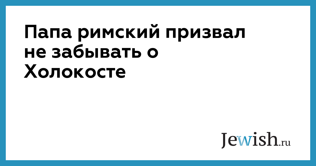 Папа римский Франциск призвал никогда не забывать о трагедии Холокоста, передает ТАСС. Он приветствовал и благословил музыкантов и слушателей концерта «Страдание невинных», посвященного трагедии еврейского народа в прошлом столетии, который прошел в Берлине.
