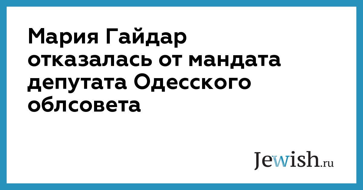 Мария Гайдар написала заявление о сложении полномочий депутата Одесского облсовета по собственному желанию. Соответствующий проект решения был вынесен на сессию областного собрания, сообщает Коммерсантъ со ссылкой на ИА Интерфакс. Сегодня депутаты Одесского облсовета утвердили это решение.