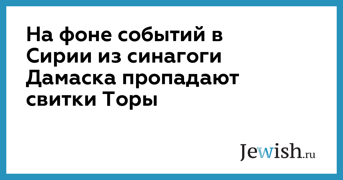На фоне событий в Сирии из синагоги Дамаска пропадают свитки Торы