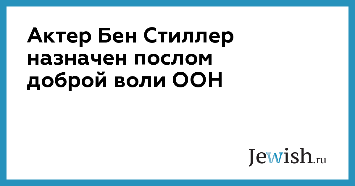 Американский актер и режиссер Бен Стиллер назначен послом доброй воли ООН, сообщает NY Daily News со ссылкой на пресс-службу управления Верховного комиссара ООН по делам беженцев (UNHCR).