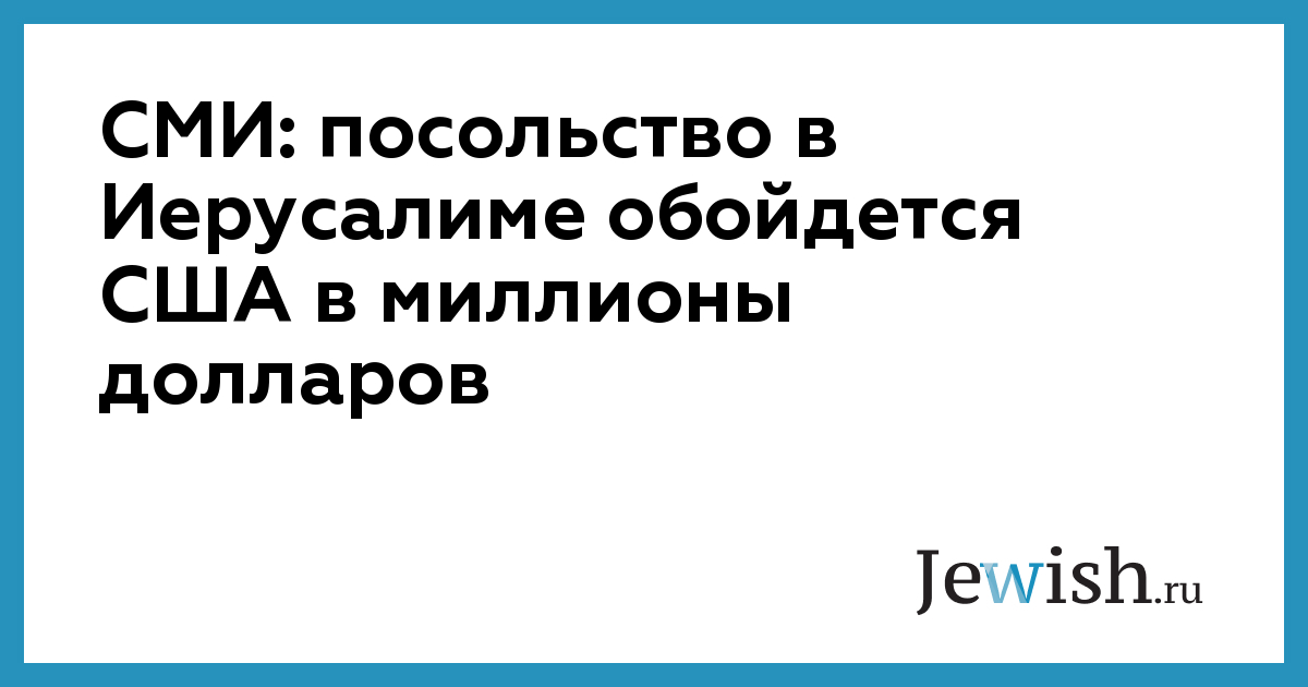 Строительство здания посольства США в Иерусалиме обойдется американским властям в $21,2 млн, сообщает Коммерсантъ со ссылкой на Times of Israel. Уточняется, что в марте президент США Дональд Трамп заявил, что на новое диппредставительство потратят $250 тыс.
