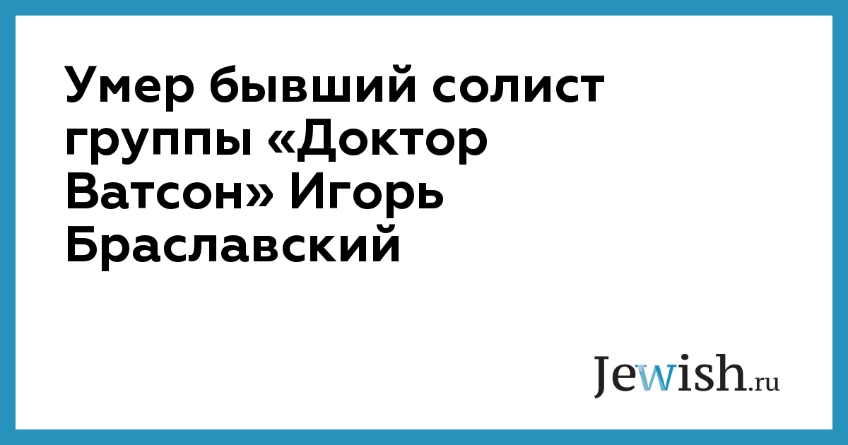 Бывший солист группы «Доктор Ватсон» Игорь Браславский скончался на 60 году жизни. Об этом кореспонденту ТАСС во вторник сообщил друг артиста, поэт-песенник Александр Шаганов.