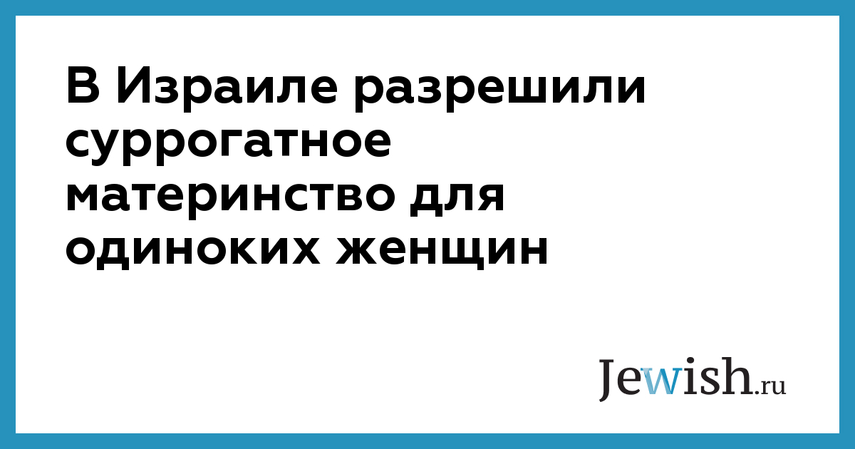 «После длительного и чрезвычайно бурного обсуждения, отклонив все возражения, пленум Кнессета утвердил в третьем, итоговом, чтении поправку к «Закону о суррогатном материнстве»… (Она) расширяет круг имеющих право на суррогатное материнство также и на женщин-одиночек, которые по медицинским показаниям не могут выносить ребенка», — сообщила парламентская пресс-служба.