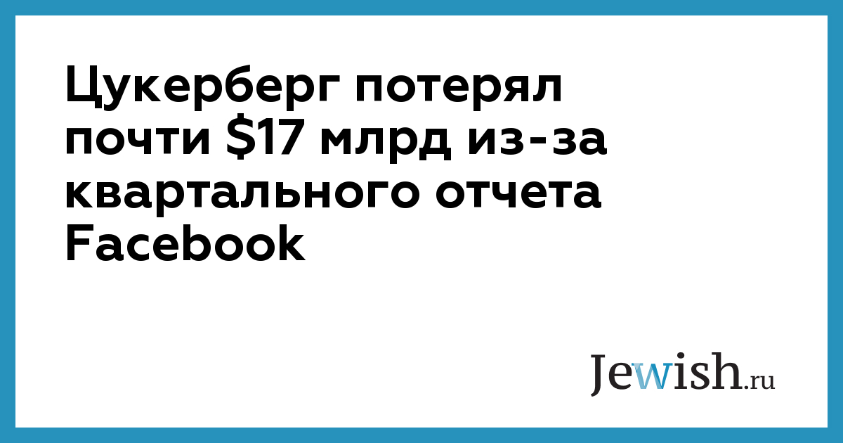Публикация квартального отчета и негативные прогнозы аналитиков привели к обвалу стоимости акций Facebook, пишет РБК со ссылкой на MarcetWatch. Финансовые потери ее основателя, Марка Цукерберга, по оценкам Bloomberg, могут составить почти $17 млрд.