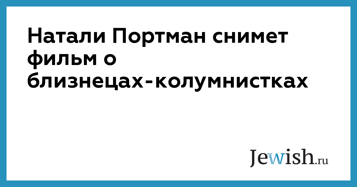 Натали Портман снимет фильм о близнецах-колумнистках