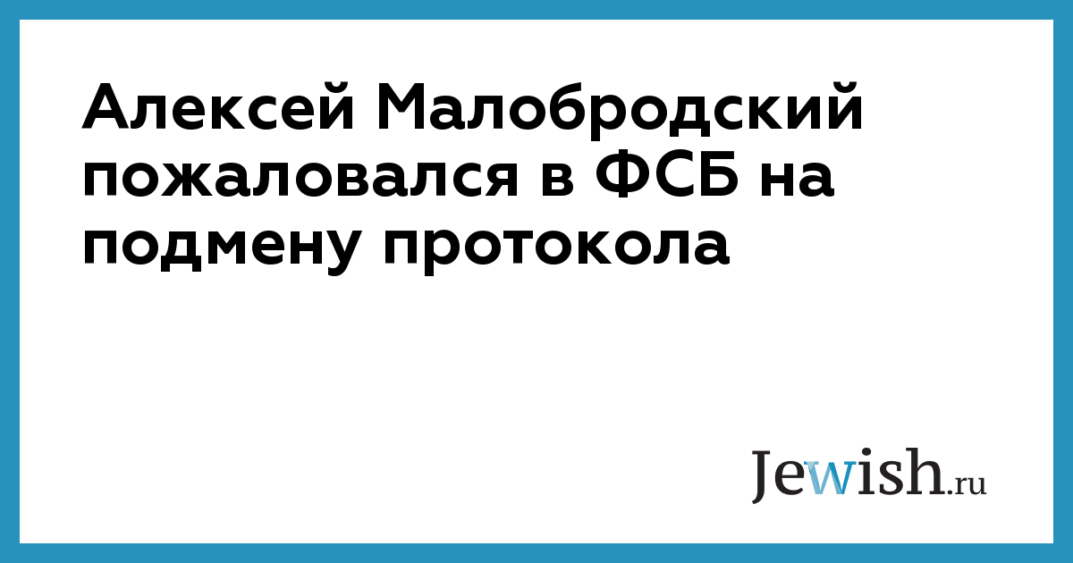 Алексей Малобродский пожаловался в ФСБ на подмену протокола