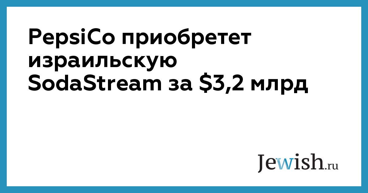 По сообщению ТАСС, компания PepsiCo, один из крупнейших в мире производителей безалкогольных напитков, приобретает израильскую SodaStream за $3,2 млрд.