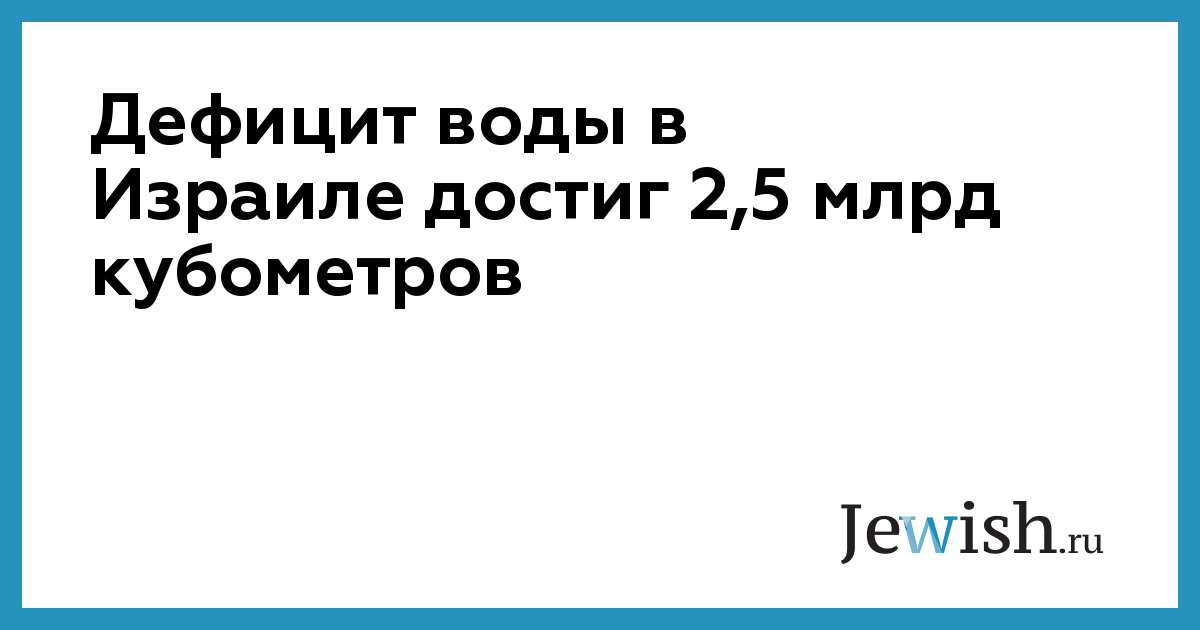Общий дефицит водных ресурсов в Израиле составляет 2,5 миллиарда кубометров, сообщило в воскресенье управление водных ресурсов страны. Об этом сообщает РИА «Новости».