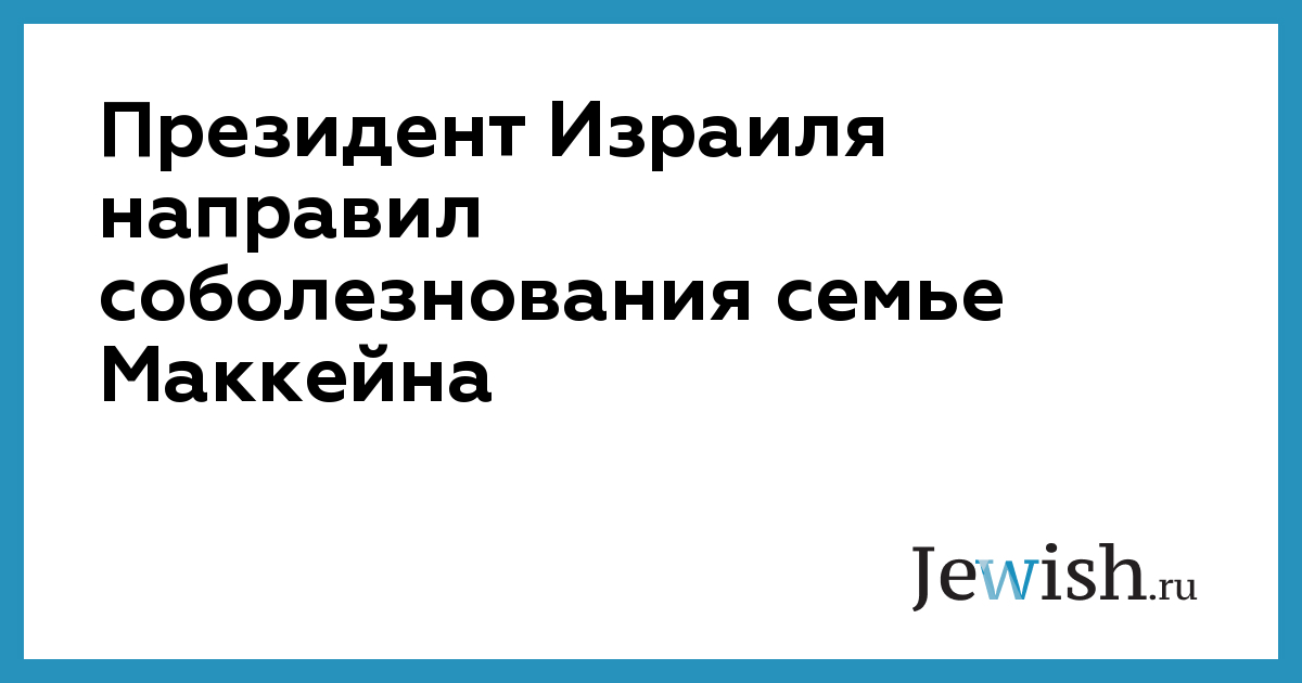 Президент Израиля Реувен Ривлин опубликовал в своем микроблоге Twitter запись по случаю смерти сенатора Джона Маккейна, пишет Newsru.co.il. «Мы прощаемся с видным политическим деятелем, защищавшим свой народ, человеком твердых ценностей и подлинным другом Израиля», — написал глава еврейского государства.