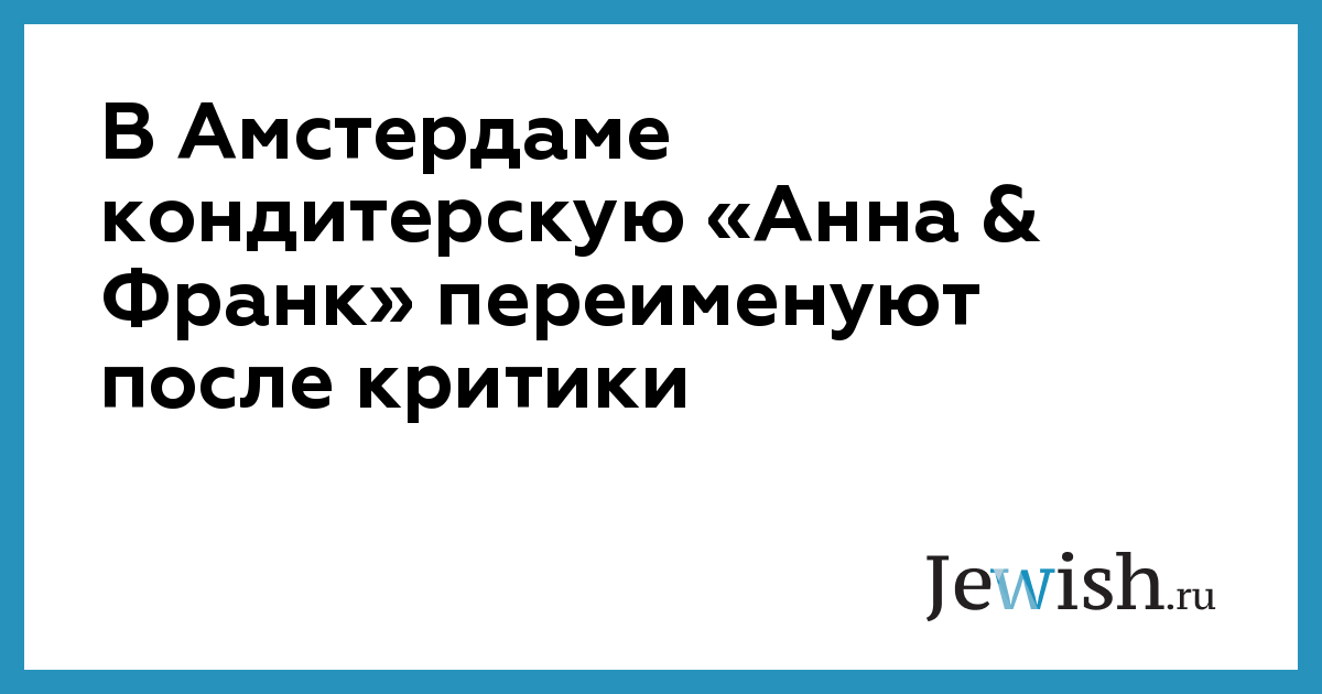 В Амстердаме кондитерскую «Анна & Франк» переименуют после критики