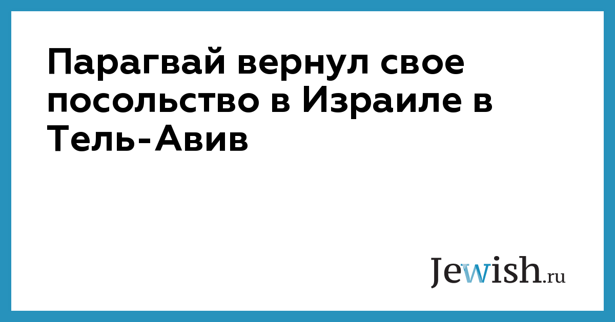 Парагвай вернул свое посольство в Израиле в Тель-Авив