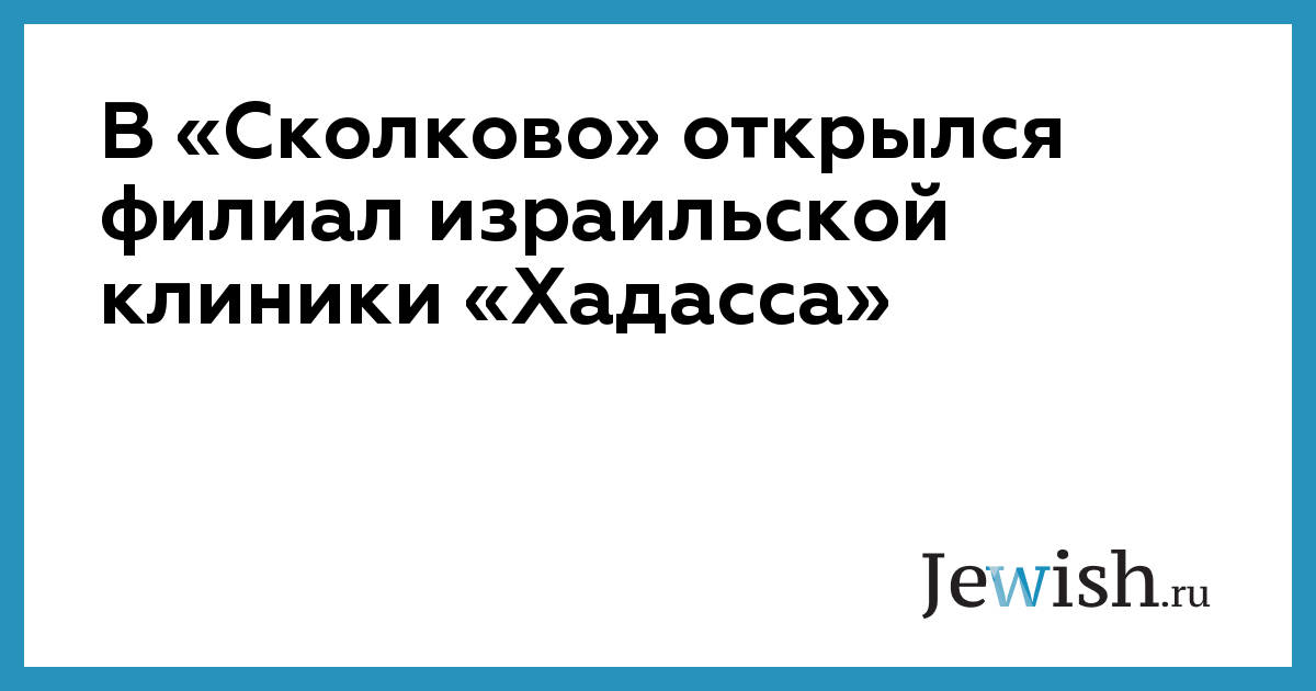 В «Сколково» открылся филиал израильской клиники «Хадасса»