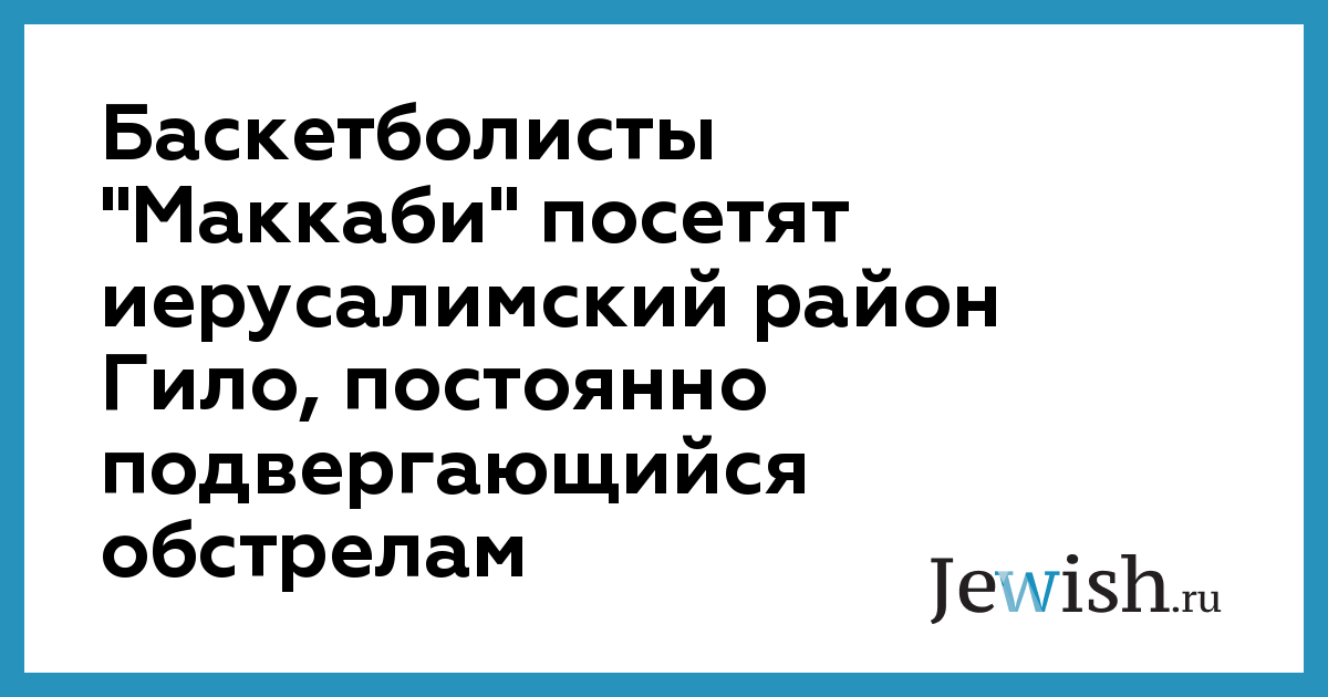 Баскетболисты "Маккаби" посетят иерусалимский район Гило, постоянно подвергающийся обстрелам