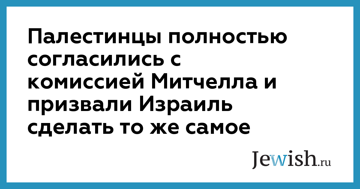 Палестинцы полностью согласились с комиссией Митчелла и призвали Израиль сделать то же самое