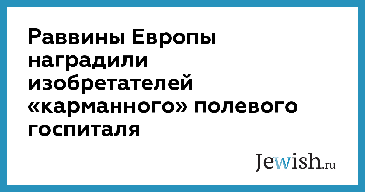 Раввины Европы наградили изобретателей «карманного» полевого госпиталя