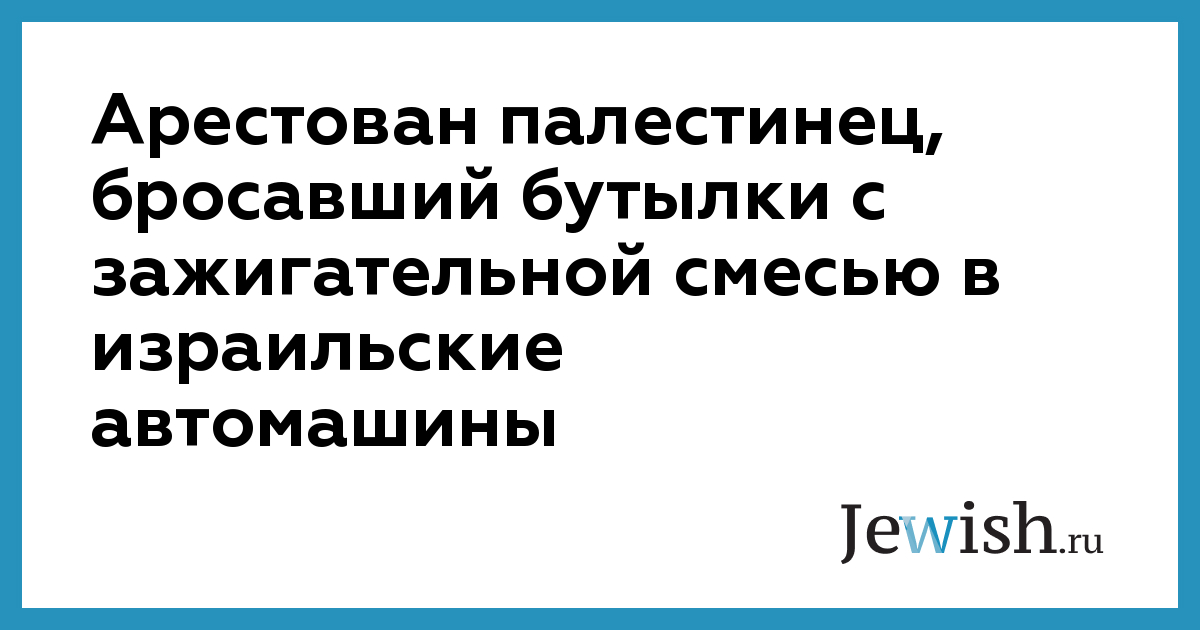 Арестован палестинец, бросавший бутылки с зажигательной смесью в израильские автомашины