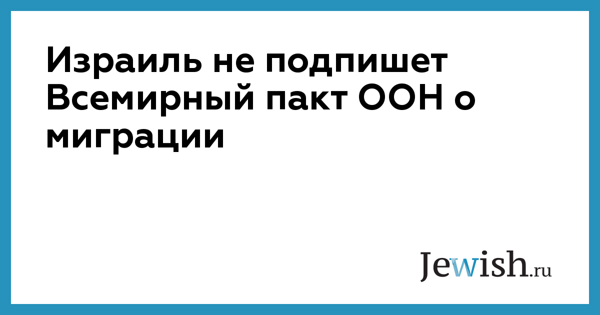 Израиль не подпишет Всемирный пакт ООН о миграции