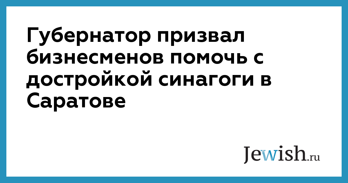 Губернатор призвал бизнесменов помочь с достройкой синагоги в Саратове