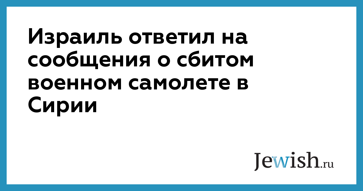 Израиль ответил на сообщения о сбитом военном самолете в Сирии