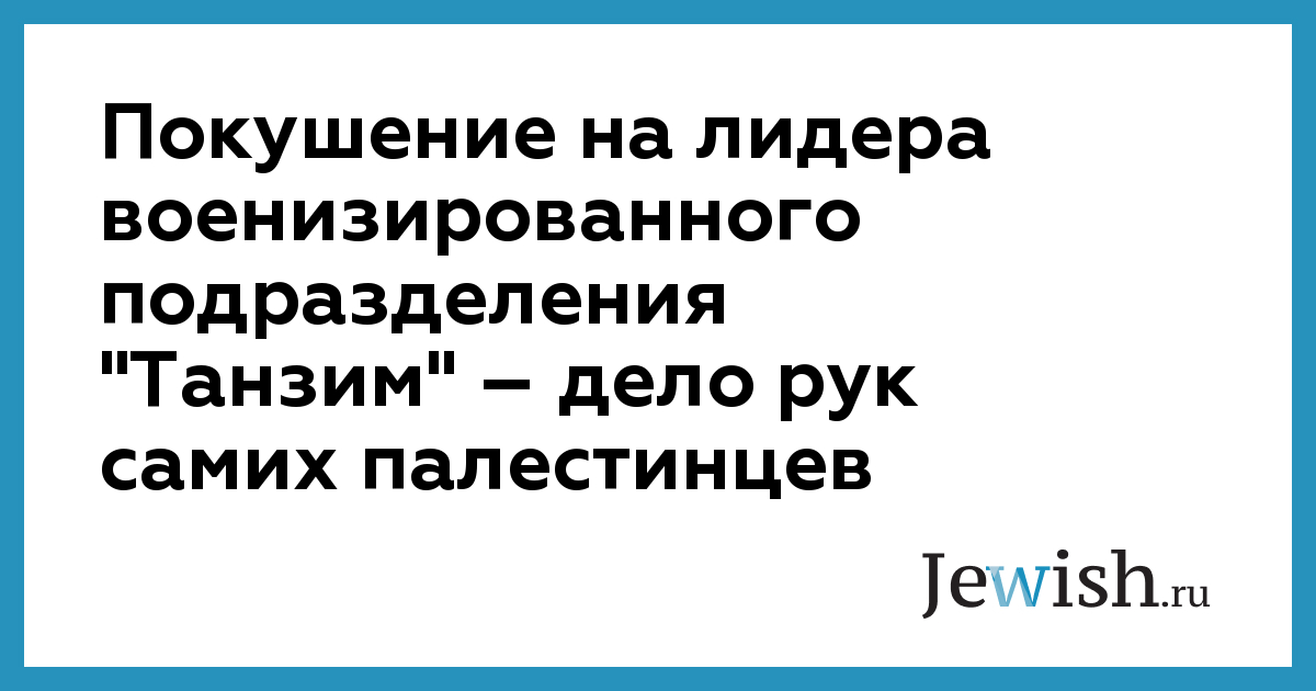 Покушение на лидера военизированного подразделения "Танзим" – дело рук самих палестинцев