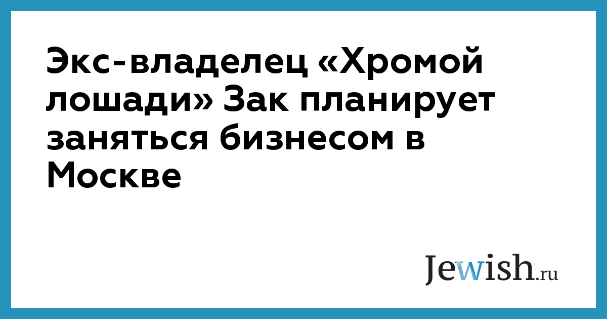 Экс-владелец «Хромой лошади» Зак планирует заняться бизнесом в Москве